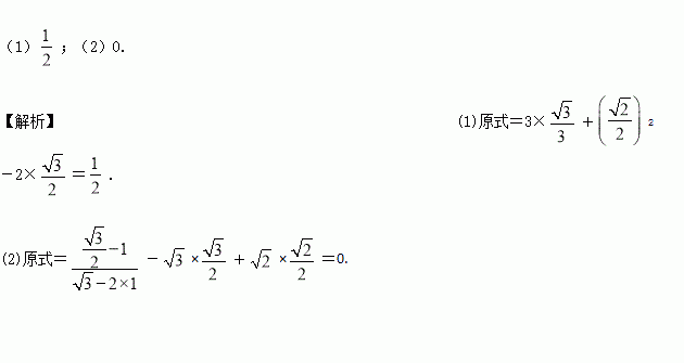 (1)3tan30°+cos245°-2sin60°; (2) - cos30°+ sin45°.