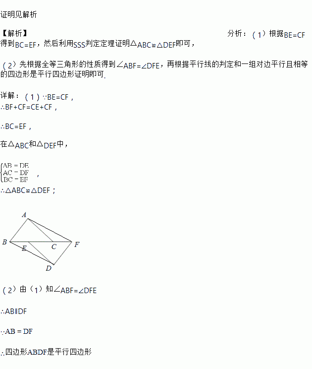 如图,点B、E、C、F在一条直线上,AB=DF,AC=DE,BE=FC.