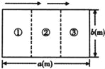 如图是一个长方形的铝合金窗框,其长为a(m),高为b(m),装有同样大的塑钢玻璃,当第②块向右拉到与第③块重叠,再把第①块向右拉到与第②块重叠时,用含a与b的式子表示这时窗子的通风面积是( )m2.