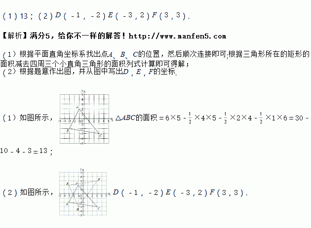 ②在图中作出△ABC关于x轴对称的图形△DEF,并写出D,E,F的坐标.