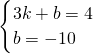 把A(3,4)、B(0,-10)代入y=kx+b得