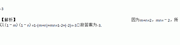 已知m+n=2,mn=﹣2,则(1﹣m)(1﹣n)=________.