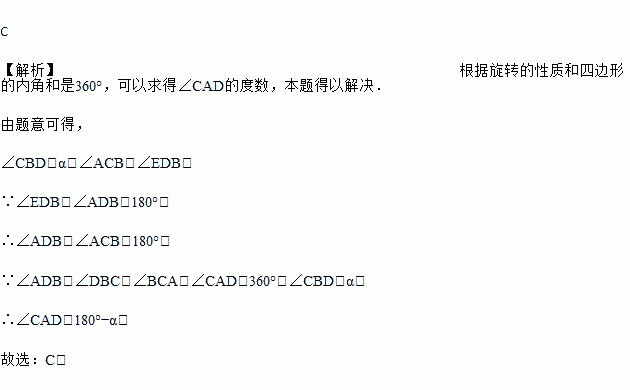 如图,将△ABC绕点B逆时针旋转α,得到△EBD,若点A恰好在ED的延长线上,则∠CAD的度数为( )