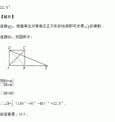 如图,延长正方形的边到,使,则________度.