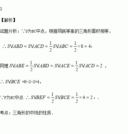 如图,在△ABC中,点D、E、F分别是线段BC、AD、CE的中点,且,则___cm2.