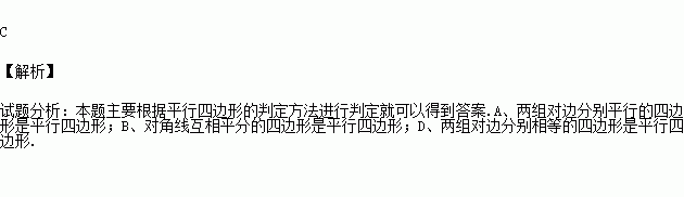 如下图,在四边形ABCD中,对角线AC、BD相交于点O,下列条件不能判定四边形ABCD为平行四边形的是( )