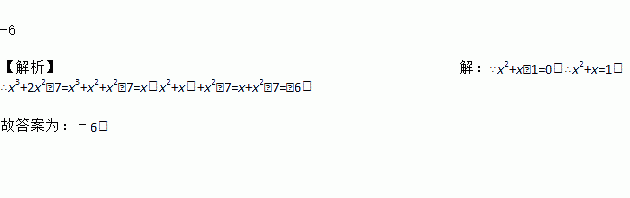 -6 【解析】【解析】 ∵x2+x﹣1=0,∴x2+x=1,∴x3+2x2﹣7=x3+x2+x2﹣7=x(x2+x)+x2﹣7=x+x2﹣7=﹣6. 故答案为:﹣6.