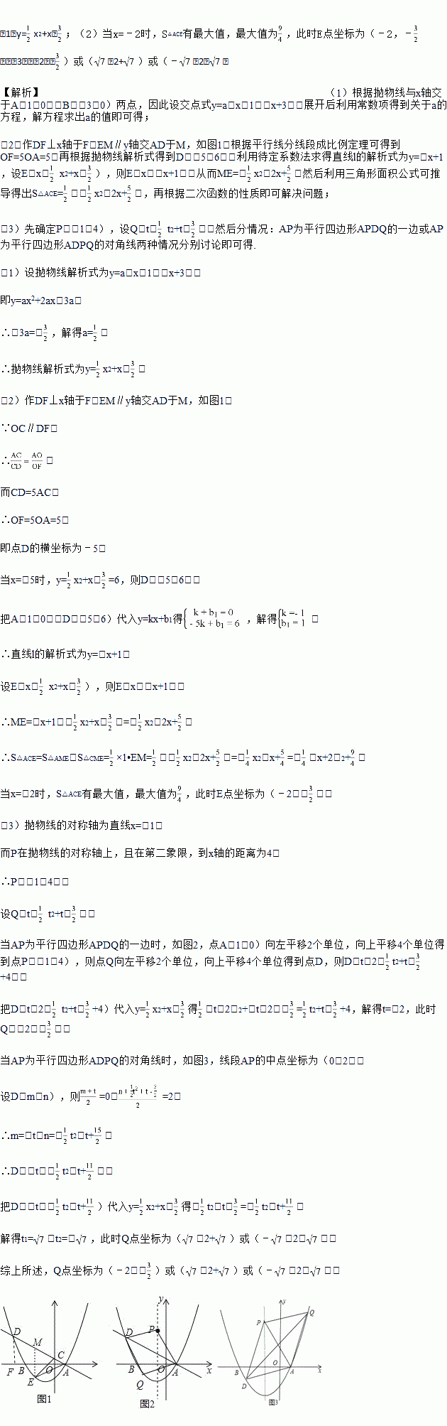 (3)如图,设P在抛物线的对称轴上,且在第二象限,到x轴的距离为4,点Q在抛物线上,若以点A,D,P,Q为顶点的四边形能否成为平行四边形?若能,请直接写出点Q的坐标;若不能,请说明理由.