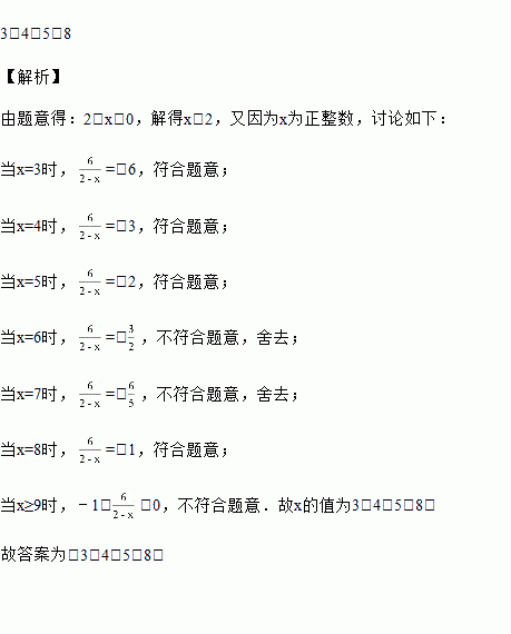 已知x为正整数,当时x=________时,分式的值为负整数.