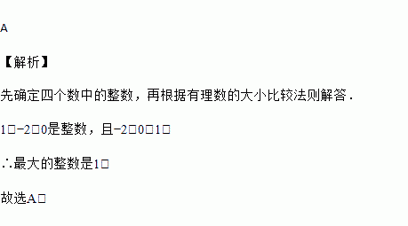 在1,﹣2,0, 这四个数中,最大的整数是( )