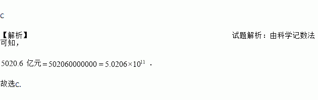 2016年,北京市旅游业总体保持稳定健康发展态势,接待旅游总人数2.85亿人次,增长4.6%增速同比提高0.3百分点;实现旅游总收入5020.6亿元,将5020.6亿用科学记数法表示应为( )