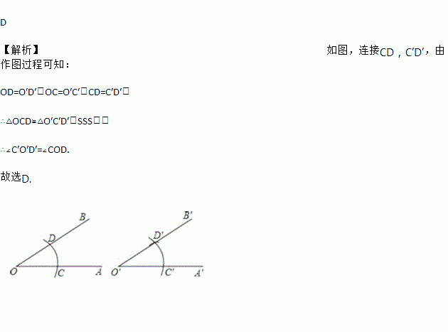 如图,用直尺和圆规作∠A′O′B′=∠AOB,能够说明作图过程中△C′O′D′≌△COD的依据是( )