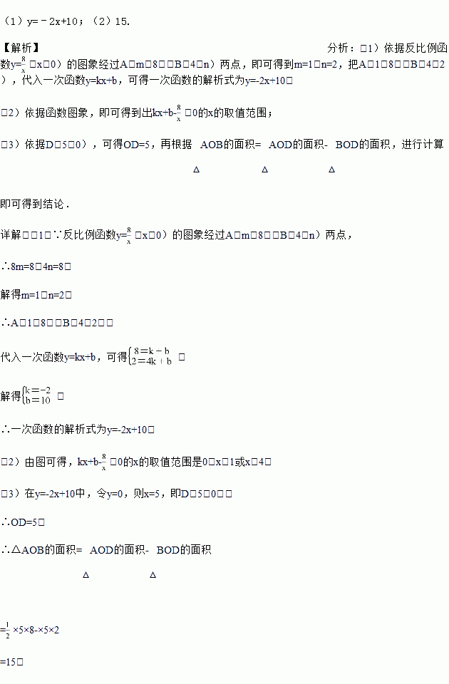 (x>0)的图象交于A(m,8),B(4,n)两点.