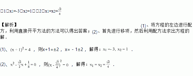 (1)x2+2x+1=4; (2)x2-x=-.