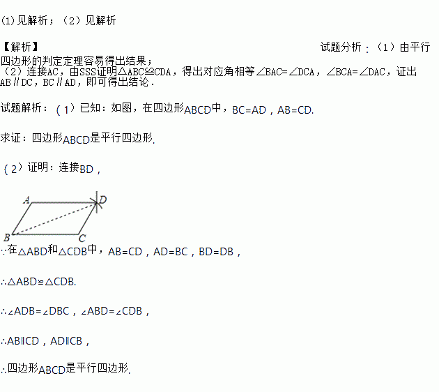 嘉琪同学要证明命题“两组对边分别相等的四边形是平行四边形”是正确的,她先用尺规作出了如图所示的□ABCD,并写出了如下尚不完整的已知和求证.