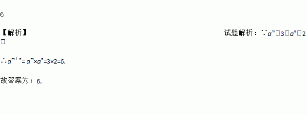 已知am=3,an=2,则am+n的值为__.
