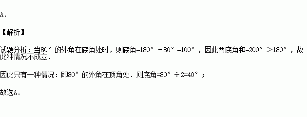如图,在△ABC中,D是BC上延长线上一点,∠B=40°,∠ACD=120°,则∠A等于( )