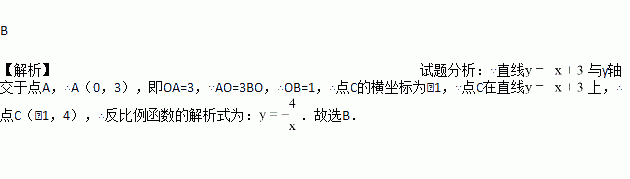 如图,直线与轴交于点A,与反比例函数的图像交于点C,过点C作CB⊥轴于点B,AO=3BO,则反比例函数的解析式为( )