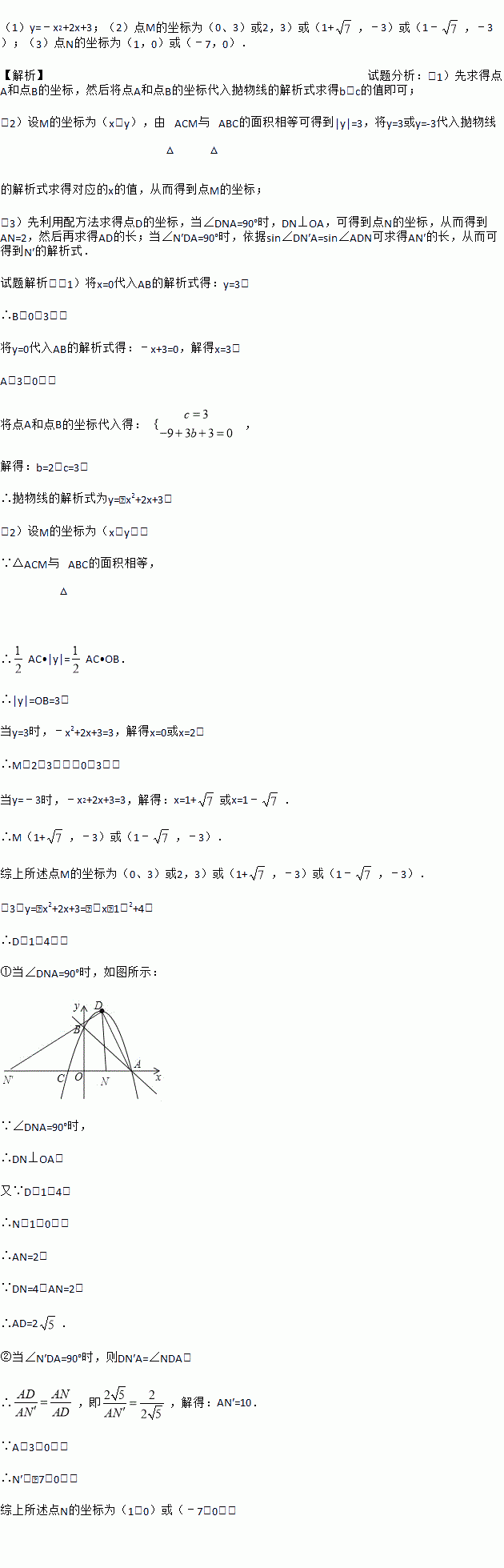 (3)在x轴上是否存在点N使△ADN为直角三角形?若存在,确定点N的坐标;若不存在,请说明理由.