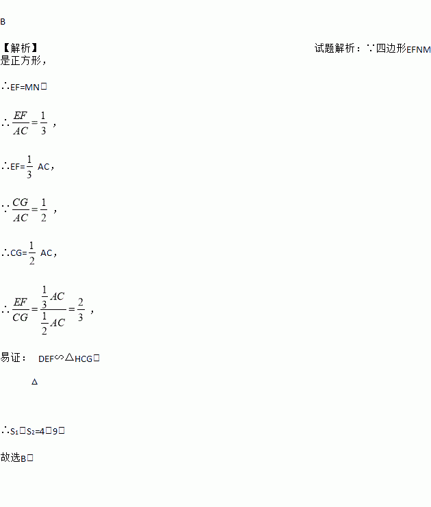 有3个正方形如图所示放置,阴影部分的面积依次记为S1,S2,则S1:S2等于( )