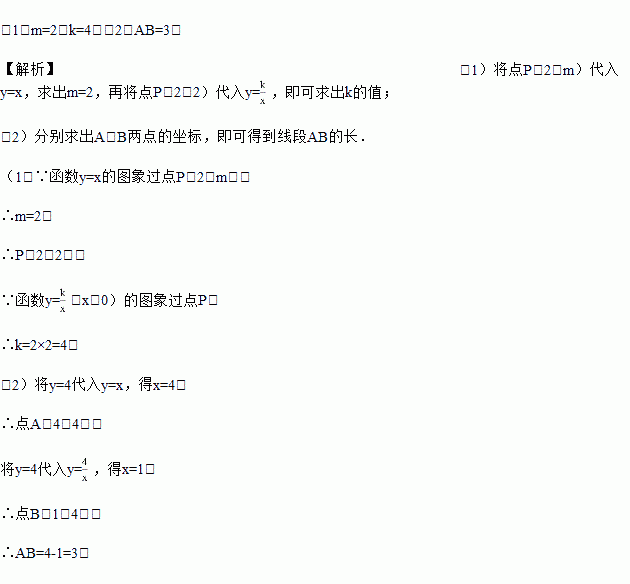 如图,函数y=x的图象与函数y=(x>0)的图象相交于点P(2,m).
