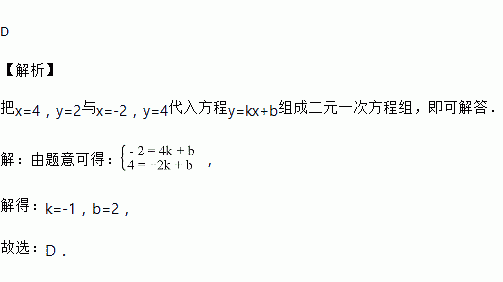 已知x=4,y=﹣2与x=﹣2,y=4都是方程y=kx+b的解,则k与b的值分别为( )