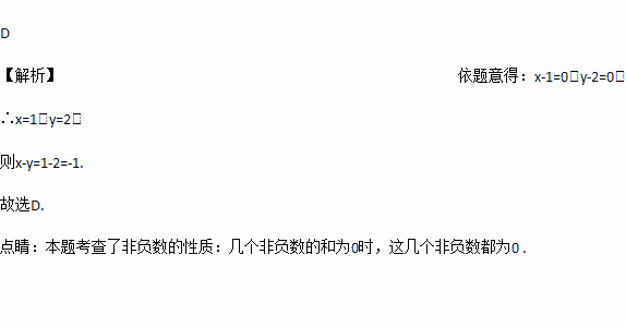 已知x,y为实数,且,则x-y的值为( ).