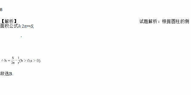 若为圆柱底面的半径,为圆柱的高.当圆柱的侧面积一定时,则与之间函数关系的图象大致是( )