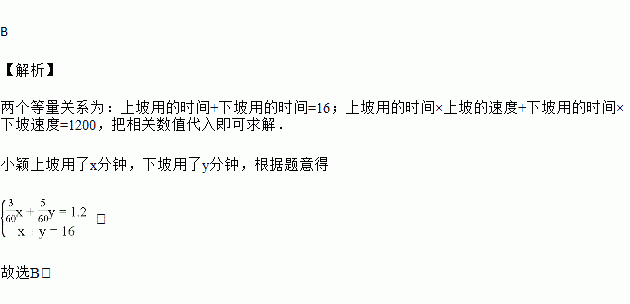 小颖家离学校1200米,其中有一段为上坡路,另一段为下坡路她去学校共用了16分钟![]()