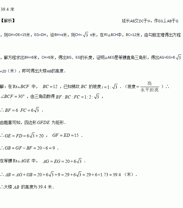 如图所示,某办公大楼正前方有一根高度是
