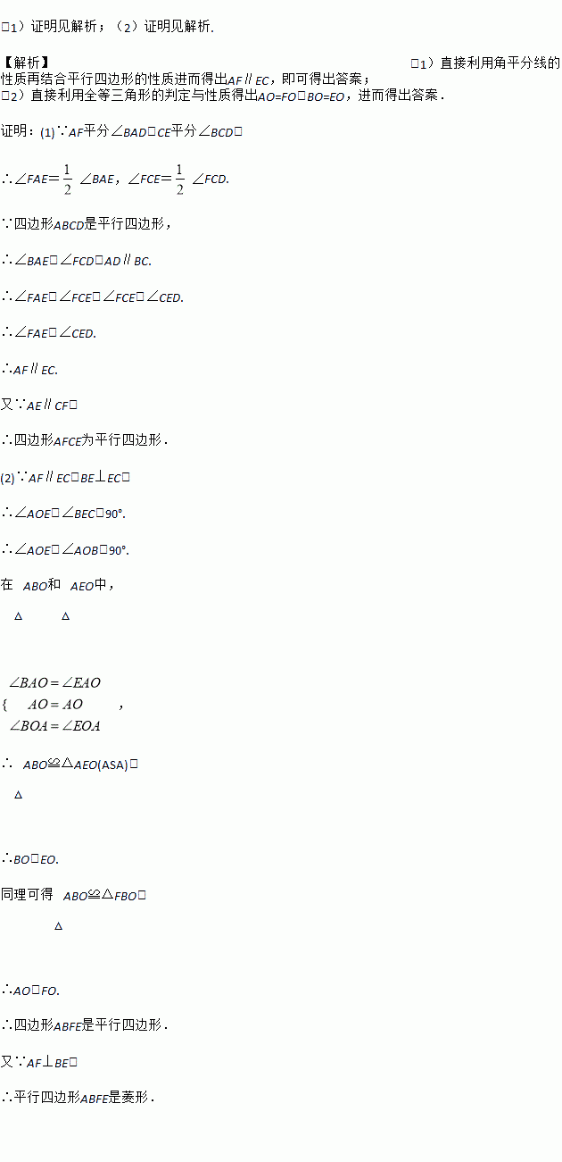 (2)如图2,若BE⊥EC,求证:四边形ABFE是菱形.