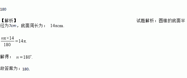 圆锥的底面半径为7cm,母线长为14cm,则该圆锥的侧面展开图的圆心角为____°.