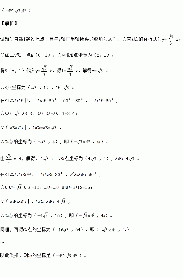 如图,在平面直角坐标中,直线l经过原点,且与y轴正半轴所夹的锐角为60°,过点A(0,1)作y轴的垂线l于点B,过点B1作作直线l的垂线交y轴于点A1,以A1B.BA为邻边作
