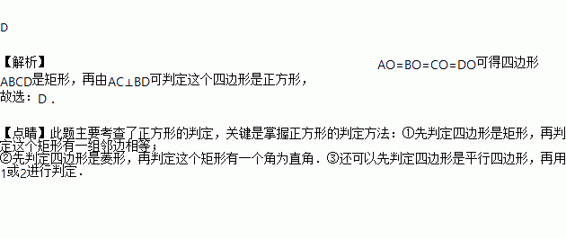 如图,在四边形ABCD中,点O是对角线的交点,能判定这个四边形是正方形的是( )