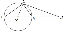 如图,已知AB为⊙O的直径,C为⊙O上一点,CD与AB的延长线交于点D.