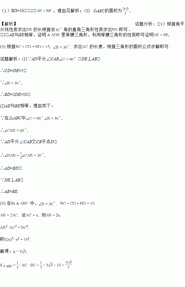如图,在△ABC中,,AD平分∠CAB,交CB于点D,过点D作于点E.若,CD=5,.