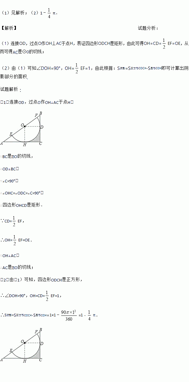 如图,在Rt△ABC中,∠C=90°,O为AB边上一点,⊙O交AB于点E,F两点,BC切⊙O于点D,且CD=EF=1,