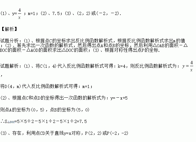 (1)利用图中条件,求反比例函数的解析式和m的值;