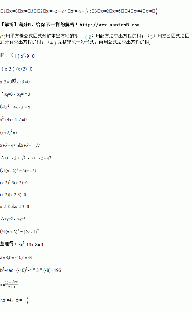 A. (x+2)2=1 B. (x﹣2)2=1 C. (x+2)2=9 D. (x﹣2)2=9