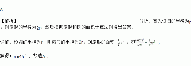 一个扇形的半径等于一个圆的半径的2倍,且扇形面积是圆的面积的一半,则这个扇形的圆心角度数是( )