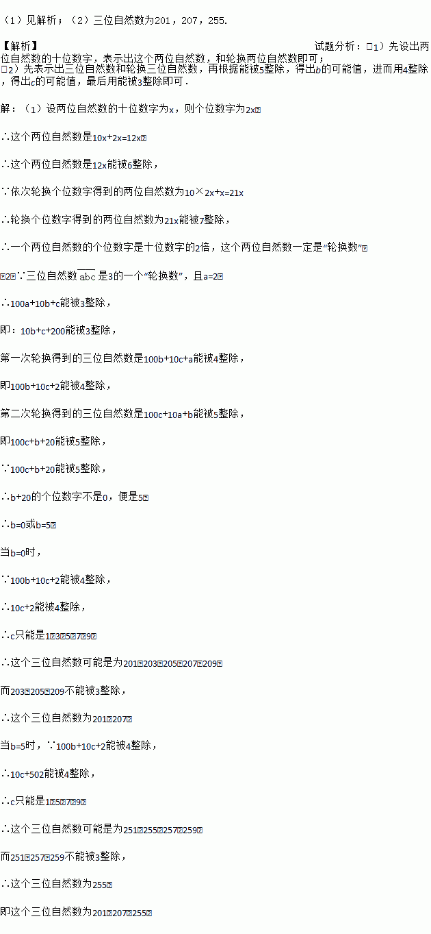 (1)若一个两位自然数的个位数字是十位数字的2倍,求证这个两位自然数一定是“轮换数”.
