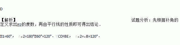 如图,已知∠1=60°,如果CD∥BE,那么∠B的度数为( )