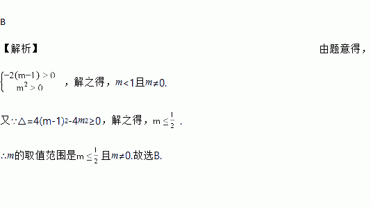关于x的一元二次方程x2+2(m-1)x+m2=0的两个实数根分别为x1,x2且x1+x2>0,x1x2>0,则m的取值范围是( )