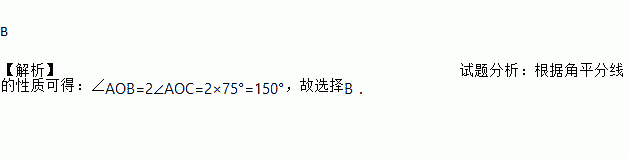 B 【解析】试题分析:根据角平分线的性质可得:∠AOB=2∠AOC=2×75°=150°,故选择B.