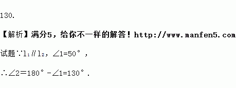 如图,若l1∥l2,∠1=50°,则∠2= °.