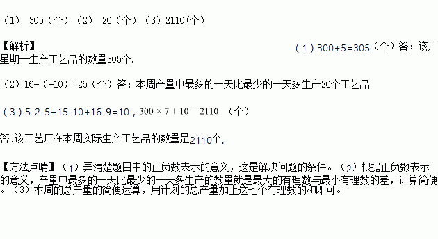 (2) 本周产量中最多的一天比最少的一天多生产多少个工艺品?
