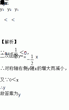 已知二次函数y=x2-7x+,若自变量x分别取x1,x2,x3,且0<x1<x2<x3,则对应的函数值y1,y2,y3的大小关系是__________________(用“<”连接)。