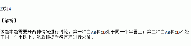 ⊙O的半径为10cm,AB,CD是⊙O的两条弦,且AB∥CD,AB=16cm,CD=12cm.则AB与CD之间的距离是 cm.