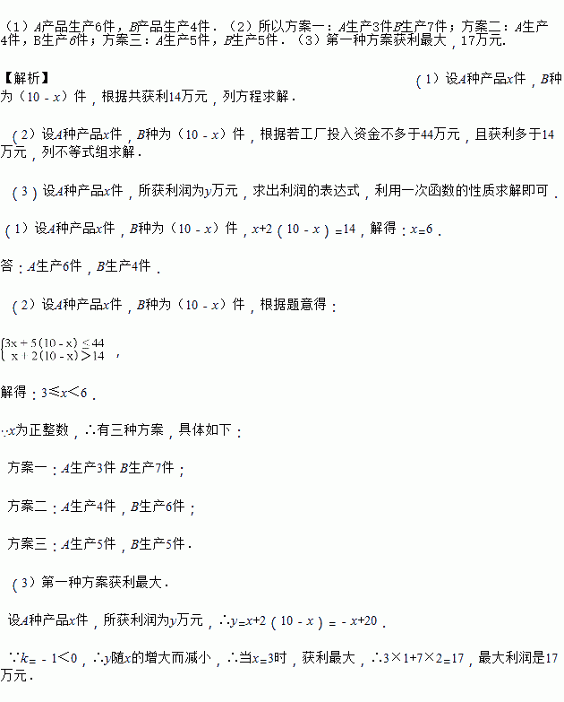 (1)若工厂计划获利14万元,问A、B两种产品应分别生产多少件?