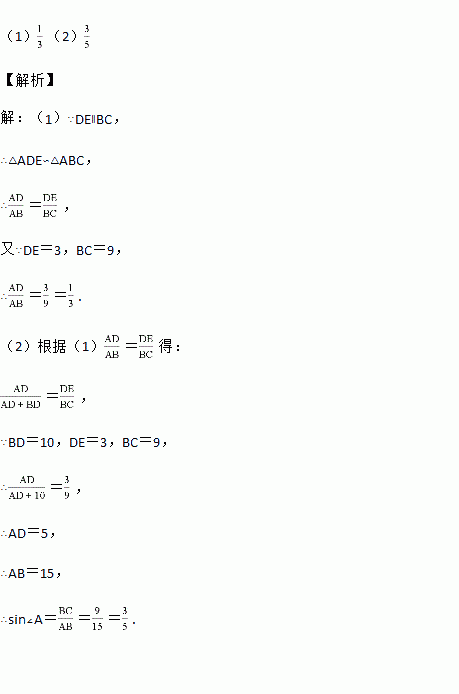 已知:如图,在△ABC中,∠C=90°,点D、E分别在边AB、AC上,DE∥BC,DE=3,BC=9.